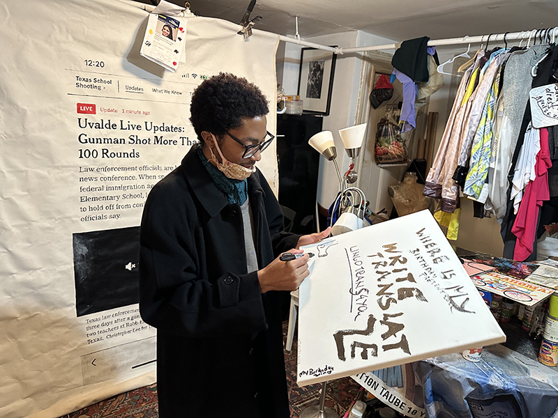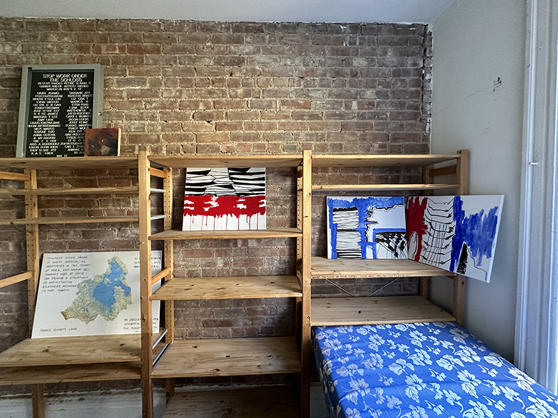ALEXANDRA offering to clean up the INSANITY OF ALL THE GHOSTS THAT inhabit this location in Central Harlem... the WORKS behind are by #rainerganahl a big instagram man @rainerganahl