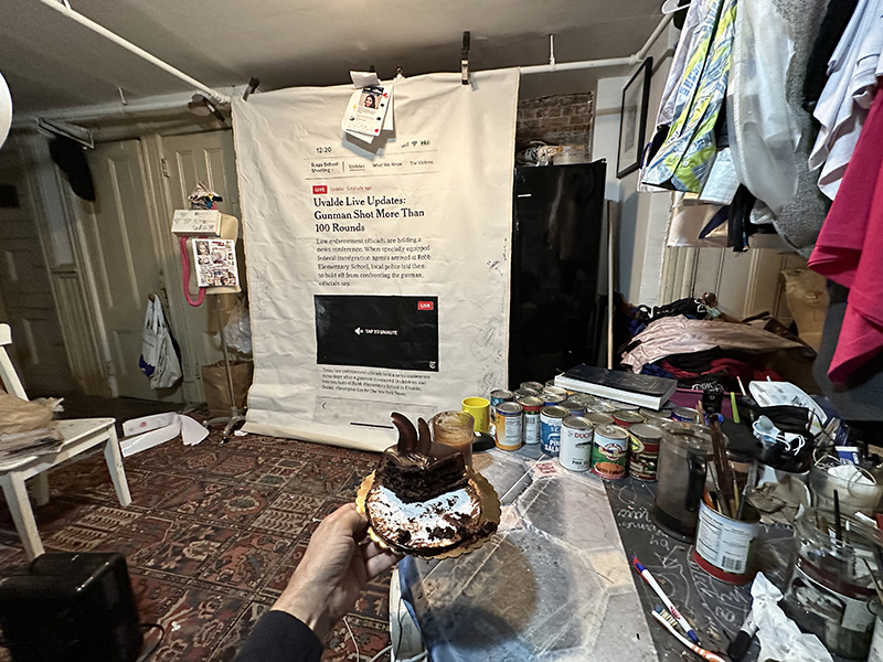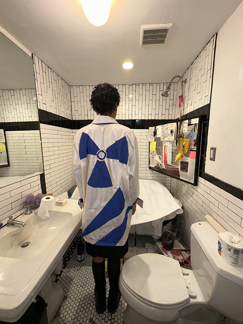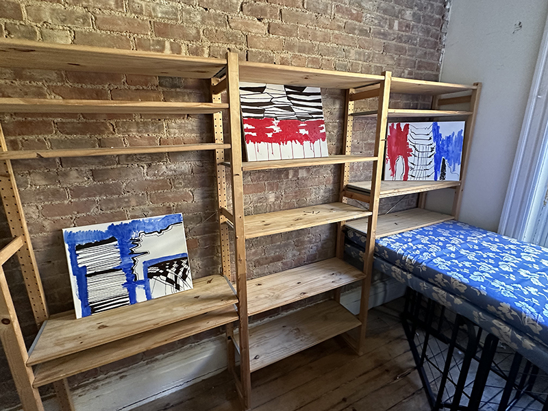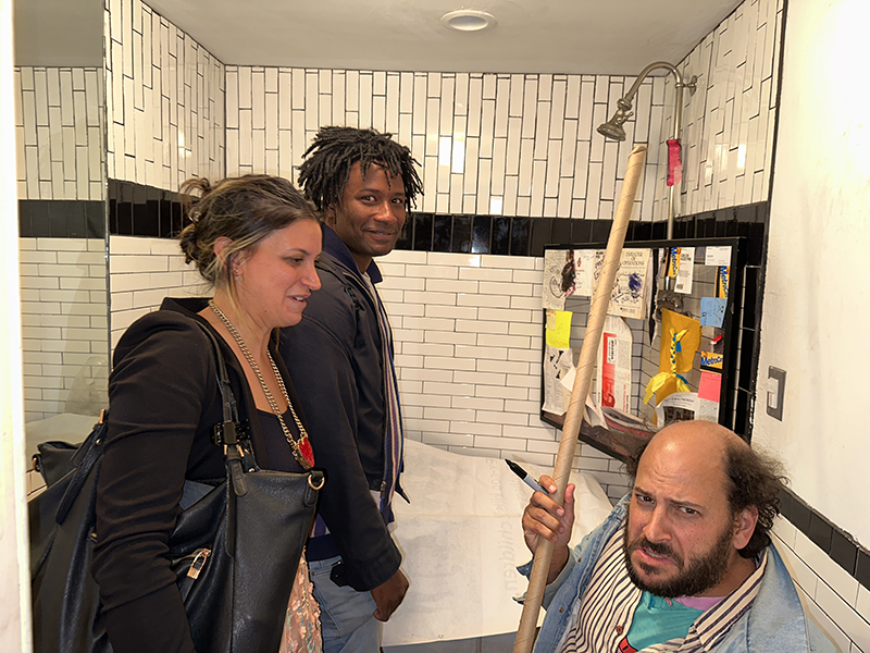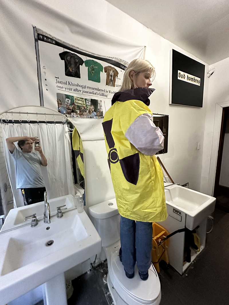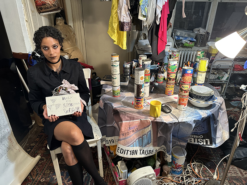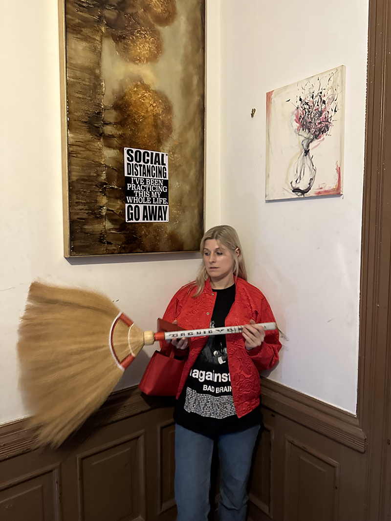 ALEXANDRA offering to clean up the INSANITY OF ALL THE GHOSTS THAT inhabit this location in Central Harlem... the WORKS behind are by #rainerganahl a big instagram man @rainerganahl