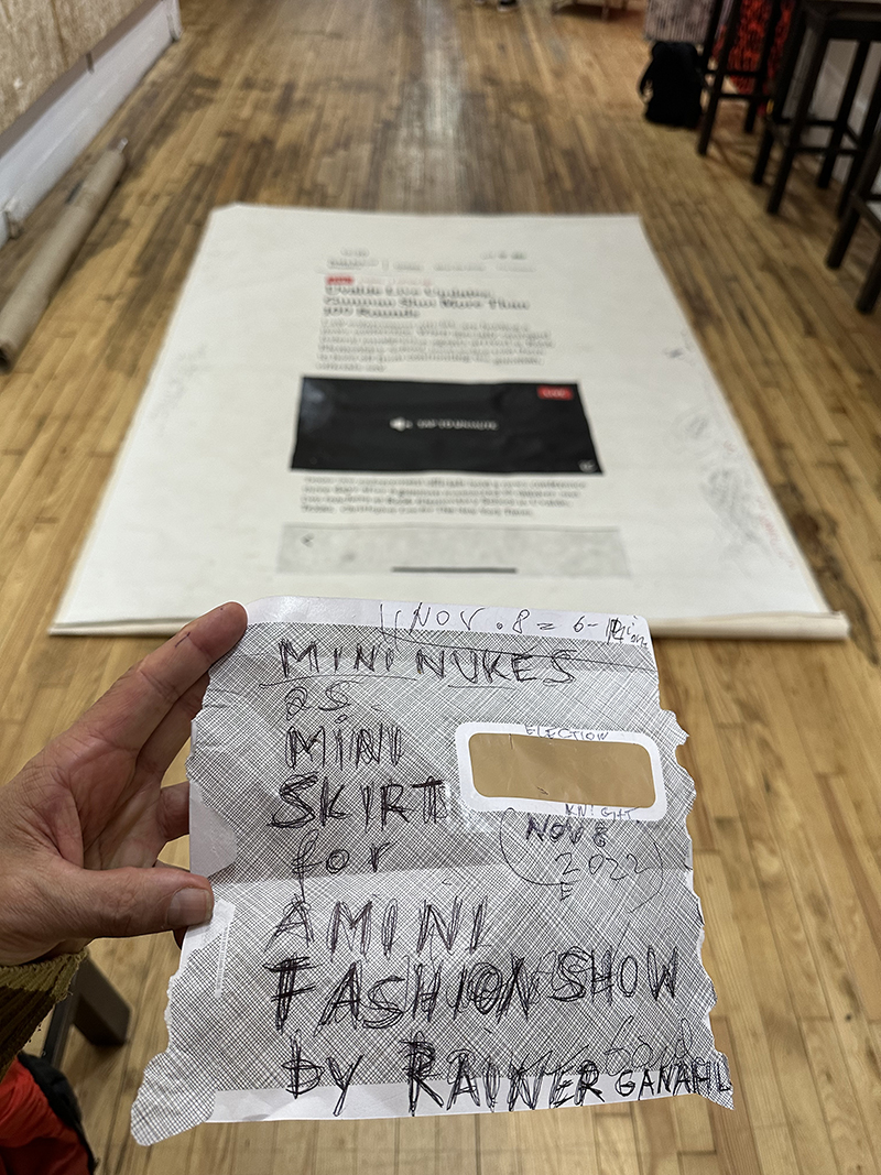 joey frank with the work of rainer ganahl behind... joey frank is a performing aritst .... and wanted to trash it .... he even destroyed his birthday art present for me....