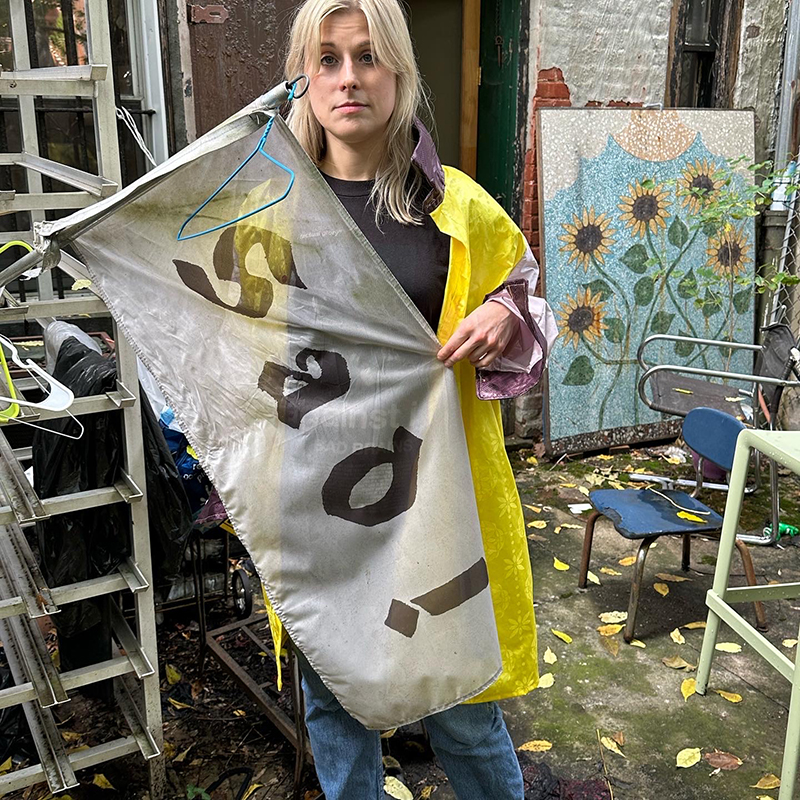 WE ARE ALL SAD ? -- A TINDER PARTY FLAG FROM 2016 OF rainer ganahl that was rescued