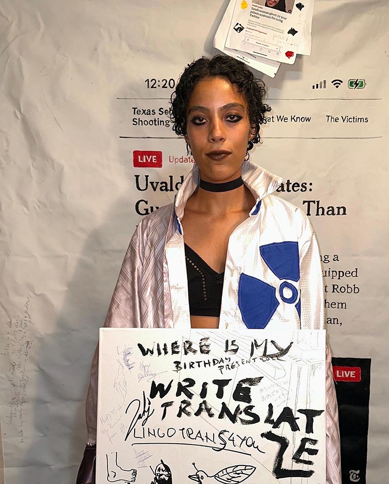 interactive work by rainer ganahl where is my birthday cake = translate into your language, 2022